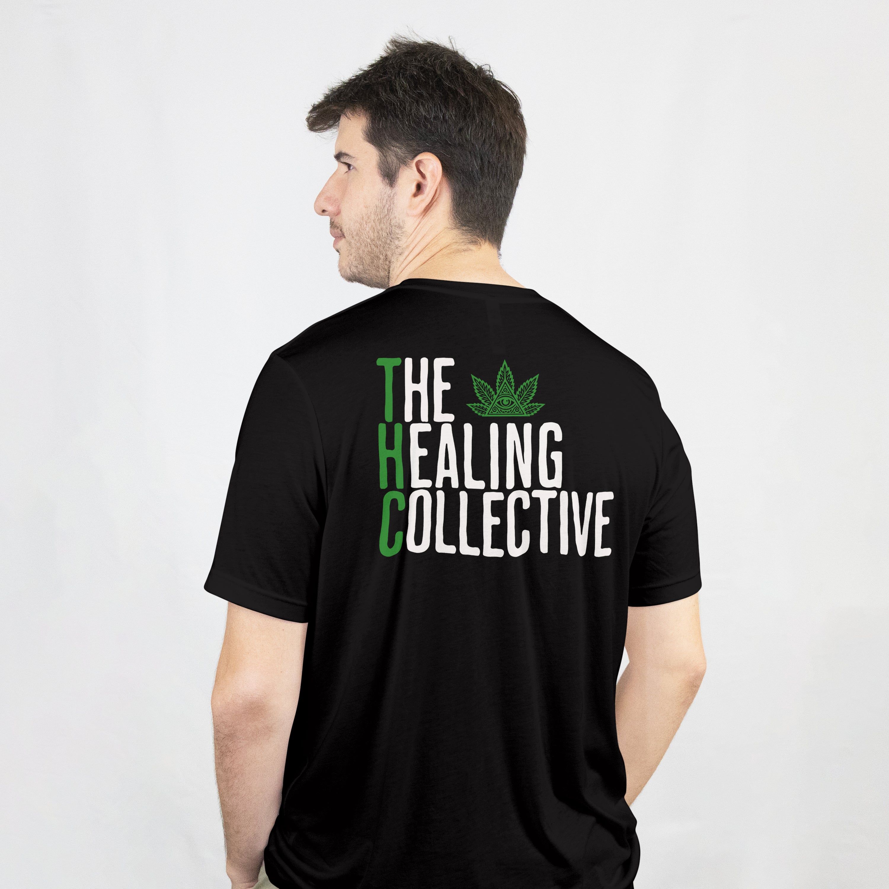 <p>Find your calm and carry your truth in <strong>The Healing Collective T-Shirt</strong> — a clean, mindful design merging streetwear energy with conscious roots. The bold THC lettering and sacred-eye leaf emblem speak to higher awareness and community healing. Soft ringspun cotton and a modern unisex fit make this tee an instant daily go-to.</p> <ul> <li>Soft ringspun cotton, classic fit, printed front & back graphics</li> <li>100% combed ringspun cotton (Gildan Softstyle 64000)</li> <li>Unisex retail fit — runs true to size</li> <li>Machine wash cold, tumble dry low</li> </ul> <p><em>Printed in-house using eco-friendly inks. Back graphic reads “The Healing Collective” with green THC lettering; front features the sacred-eye cannabis emblem.</em></p>